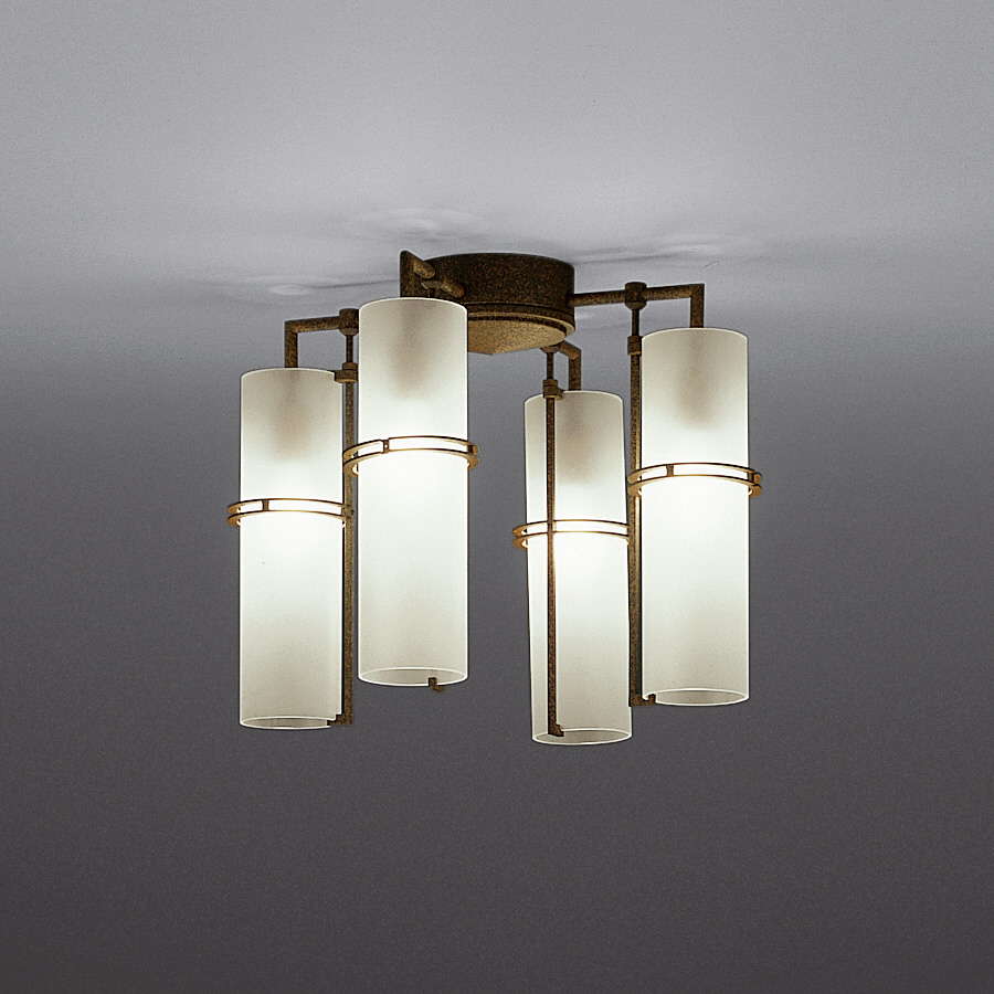 緻密な意匠が生み出す独特な雰囲気。耐熱ガラスの採用により実現したとてもスリムな消しガラスグローブと、緻密に設計されたグローブ保持構造により重厚な雰囲気の中にもモダンな表情が醸し出されます。鉄錆色を模したラスティー塗装で仕上げたアームはダークカラーのインテリアで落ちついた雰囲気を漂わせます。