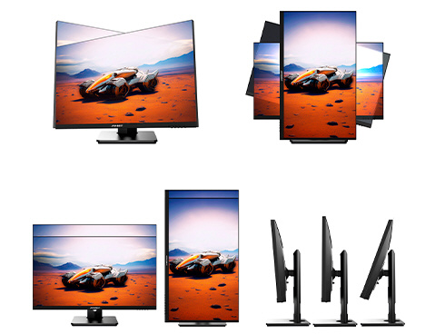 ■130mmの範囲で高さを調整出来る昇降式スタンドを採用、お好みの高さにモニターを固定できます。さらにピボット(回転)機能にも対応、縦でも使用することが出来ます。