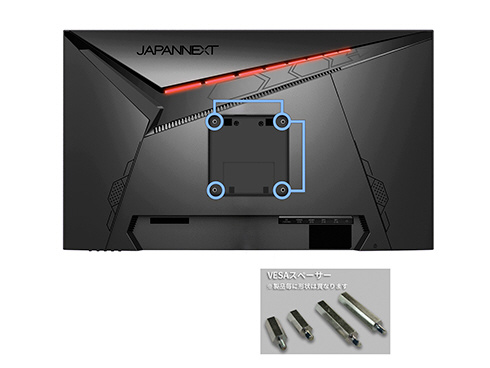 ■100mm x 100mmのVESAマウントに対応、モニターアームやモニタースタンドなどへの取り付けが可能です。