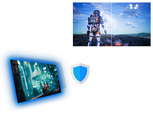 ■450cd/m2の高輝度に対応した液晶はゲームプレイだけでなく、写真編集や動画視聴などにも最適です。HDR(ハイダイナミックレンジ)対応で明るい部分も暗い部分もくっきり表現し、リアルに迫った深みのある映像を演出します。HDR対応のブルーレイディスクやビデオ・オン・デマンド、ゲームなどの表示が可能。現実に近い美しい映像をお楽しみください。