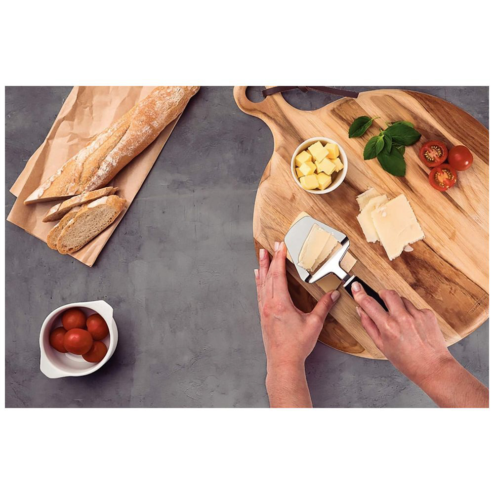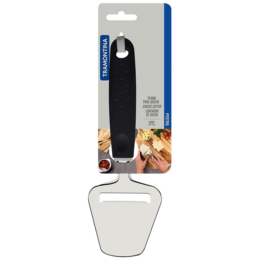 トラモンティーナのチーズカッターウティリタブラックは、ステンレスとポリプロピレン製のスタイリッシュなキッチンツールです。