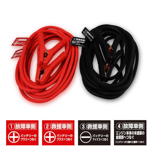 DC12V/24V 100A・3.0m軽自動車〜SUV・2tトラック用誰でも安心・安全に使用できます。