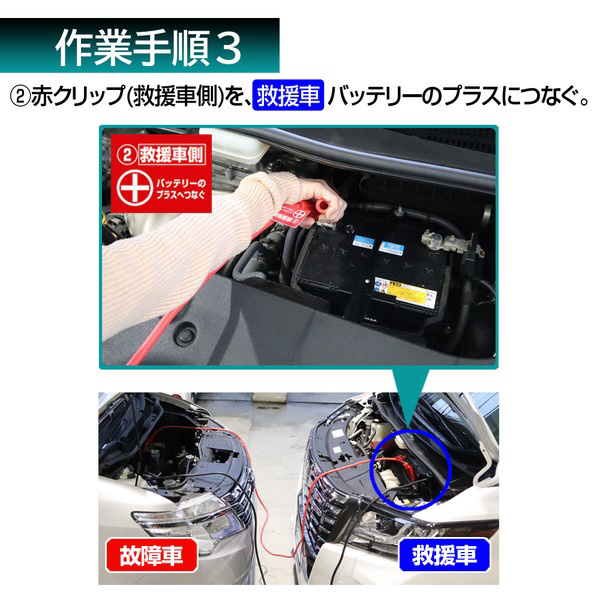 ※救援車はバッテリー容量が同じか、それ以上の車を選んでください。