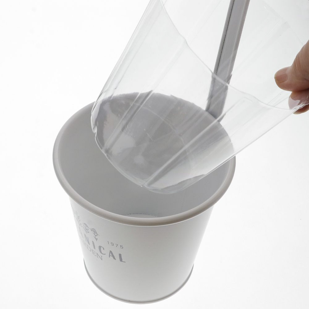 ブリキ製のハンキングポットは、プラカップ付きで小物入れとしても使えます。