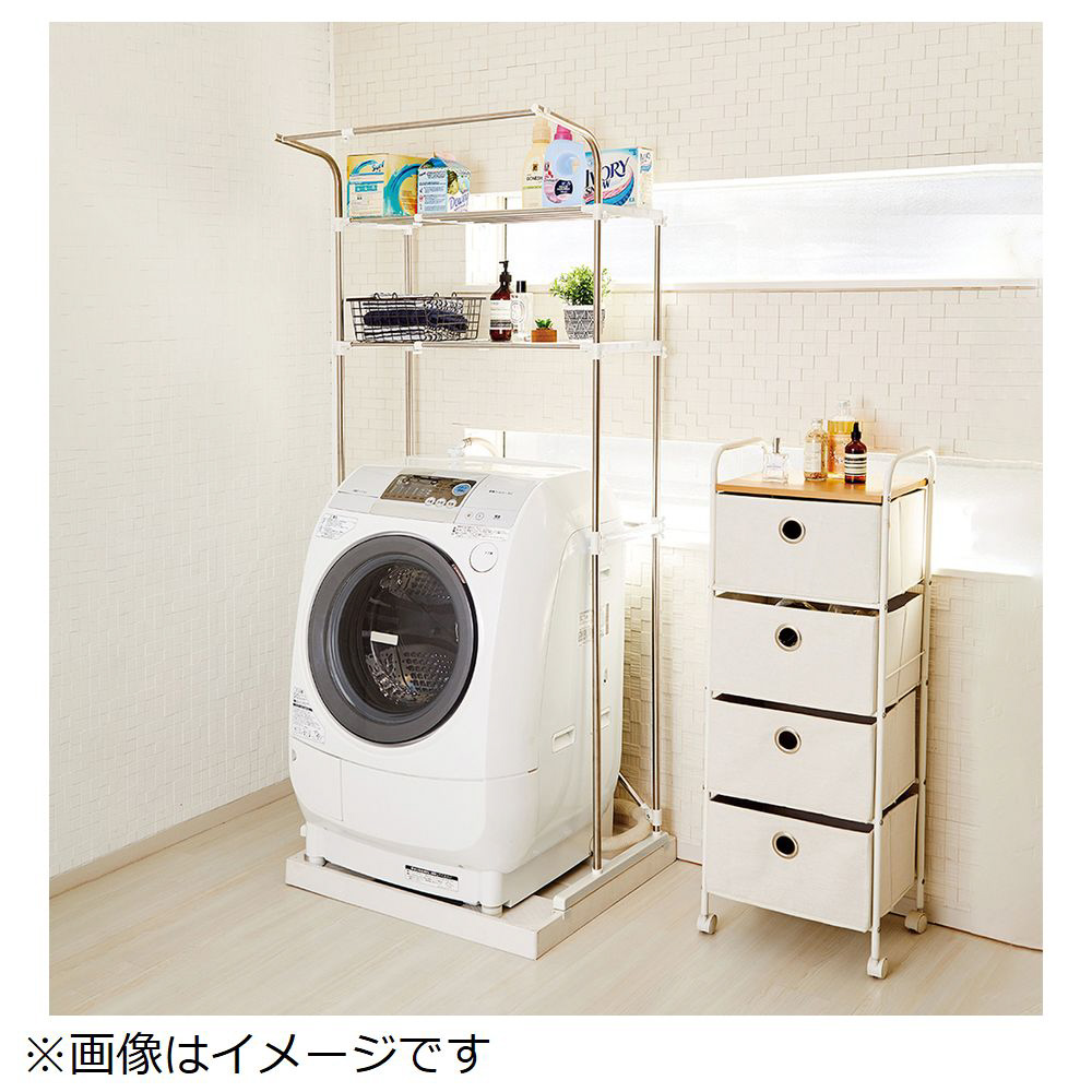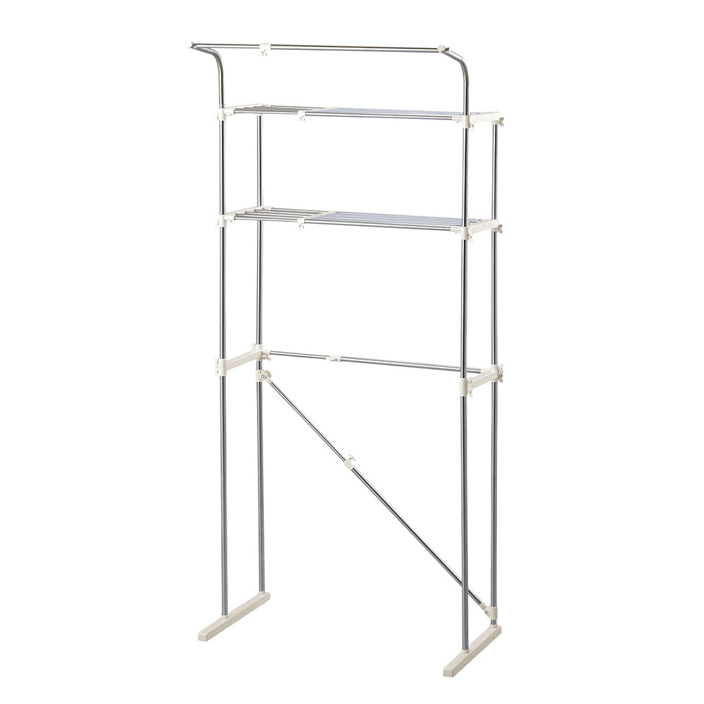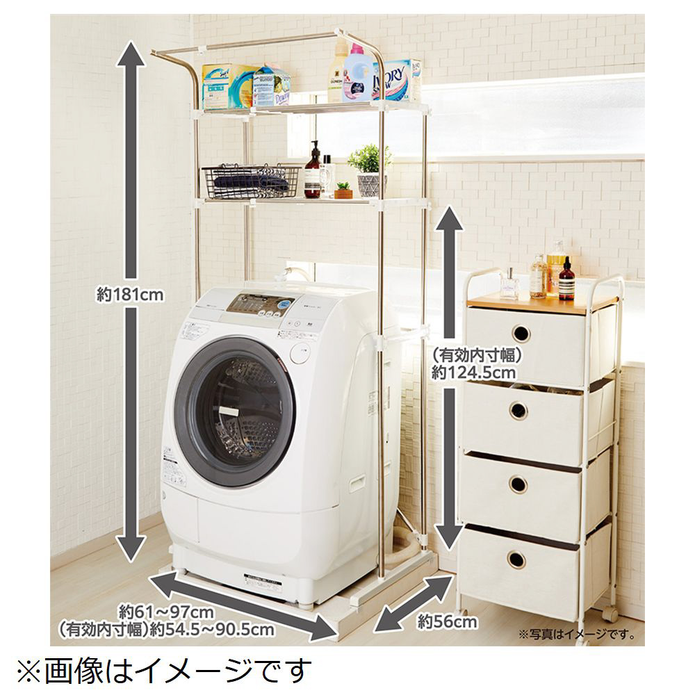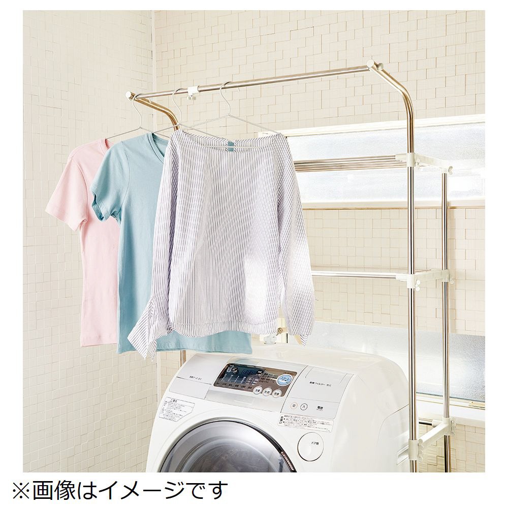 防水パンにも置けるステンレス伸縮式洗濯機ラック ハンガー掛付 NY-292