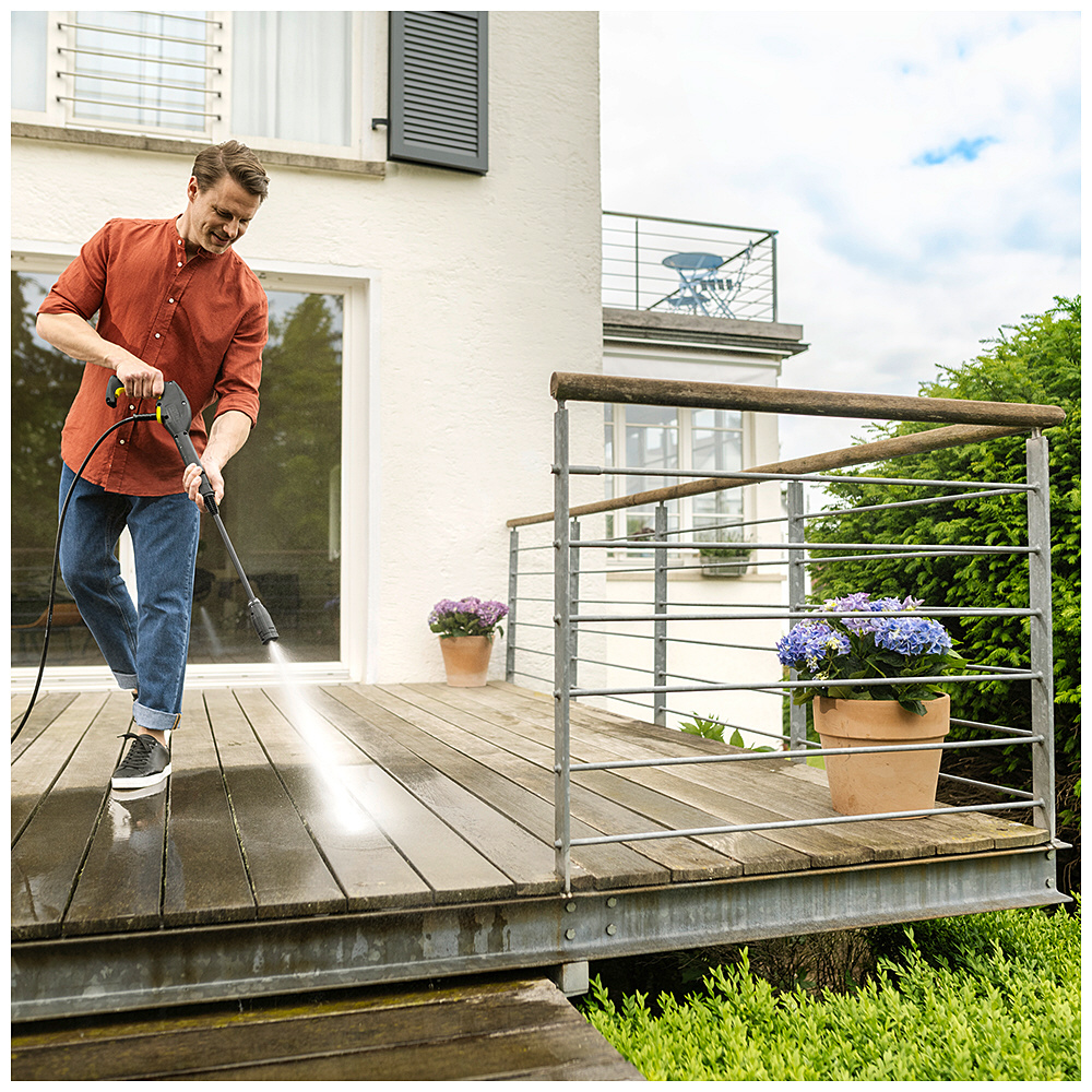 小型のK 2 Little Plusは、軽量でコンパクトなサイズとシンプルな設計で操作も簡単。圧力を調節できる広角ノズルは、やわらかい物から固い物など対象物によって水圧を自由に加減できます。洗浄したい場所、汚れの程度に合わせて洗浄の仕方を選びたい時に最適な高圧洗浄機です。