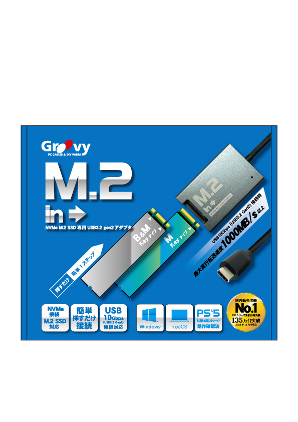 PCIe規格NVMe接続M.2 SSD専用のUSB変換アダプタです。