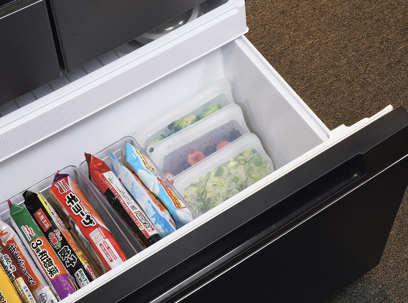 水分の多いものを入れた場合は、漏れるおそれがありますので、立てて保存してください。