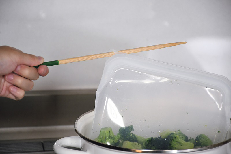 湯せんから取り出す際は、菜箸等で引っ掛けて取り出してください。