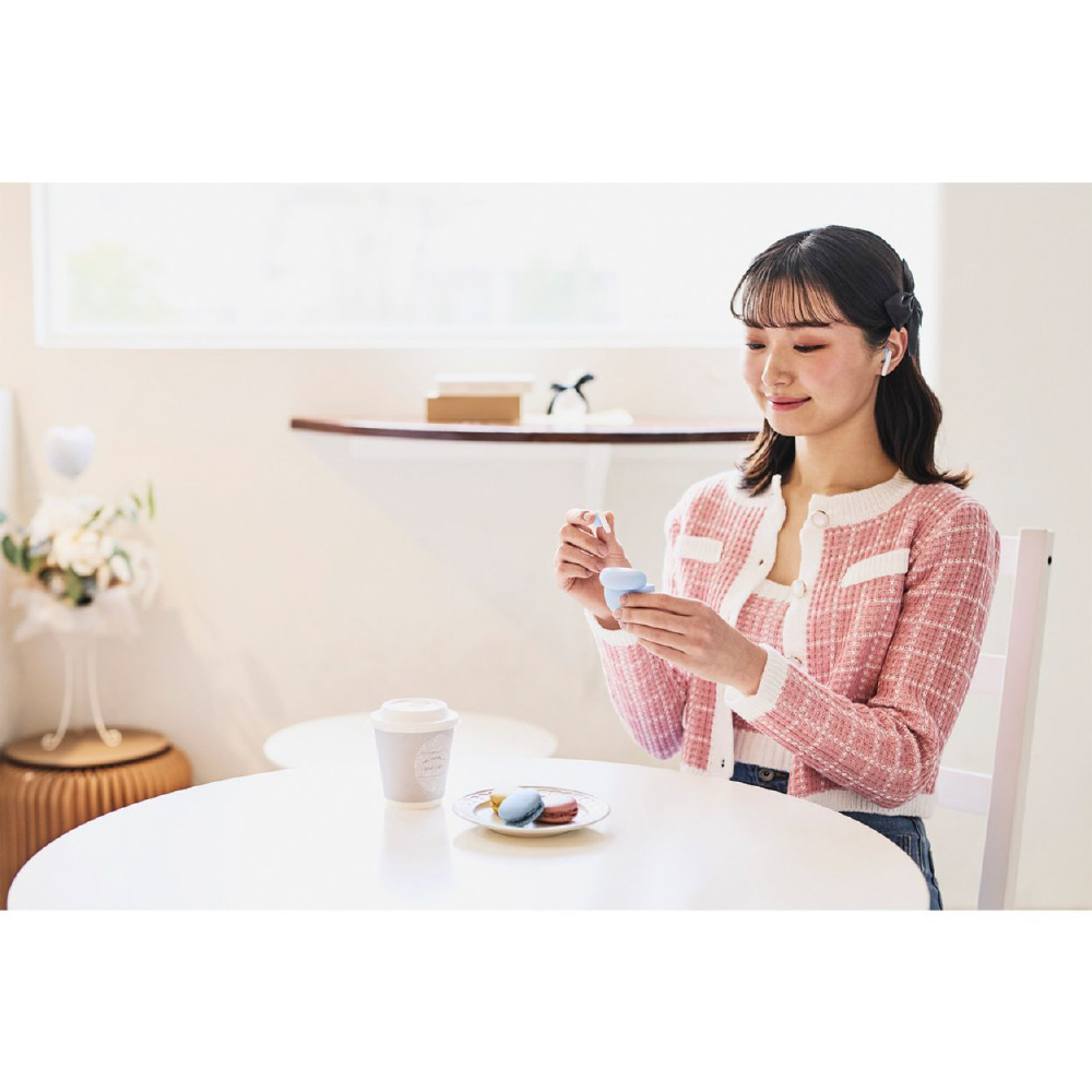装着時も収納時もコンパクトなBluetooth(R)完全ワイヤレスステレオヘッドホン。耳への負担が少なく、周囲の音や話し声が聞き取りやすいセミオープンタイプです。充電ケースはマカロンのようなコロンとした形で、ファッションのワンポイントにもなるカラーバリエーションが特長です。