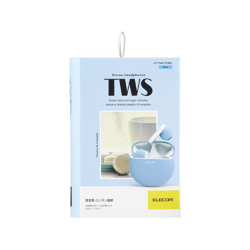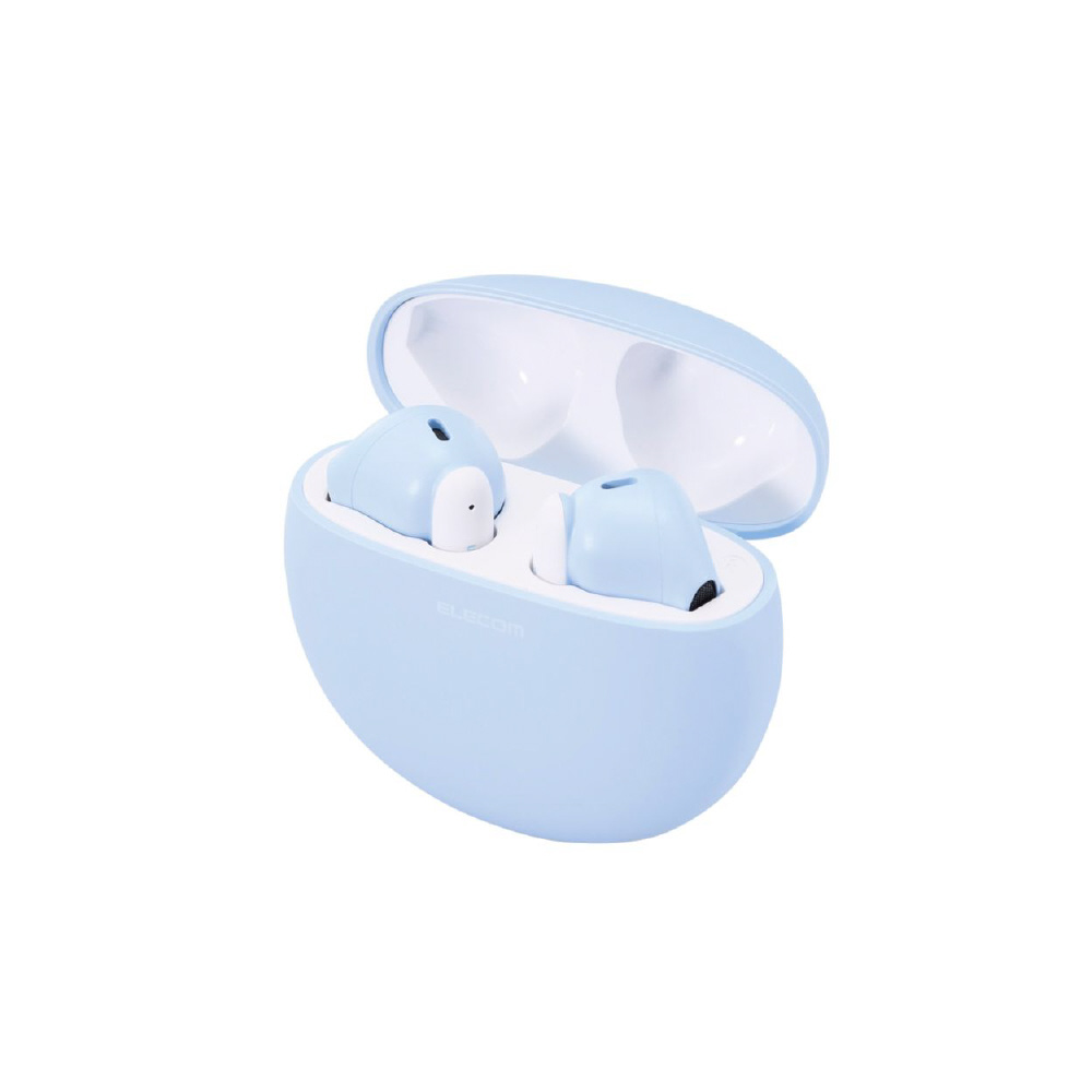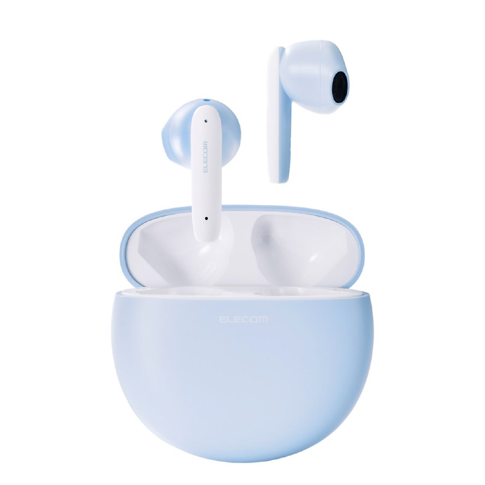 装着時も収納時もコンパクトな、セミオープンタイプのBluetooth(R)完全ワイヤレスステレオヘッドホンです。 充電ケースはマカロンのようなまるくてコロンとした形がポイントです。ファッションのワンポイントにもなる、やわらかながら存在感のある「ピンク」「ブルー」「グリーン」「イエロー」をラインアップしています。 手のひらに収まるサイズの充電ケースは、約22mmの薄さ。小さなバッグや服のポケットに入れてもシルエットが崩れず、スマートに持ち運べます。 ヘッドホンは耳への負担を軽減し、周囲の音や話し声が聞き取りやすいセミオープンタイプです。耳への圧迫感が少なく、耳せんタイプが苦手な方にもおすすめです。 耳の形状に合わせたエルゴノミクスデザインによるフィット感と、片側わずか約3.3gの超軽量設計で、快適な装着感を実現しました。 高音質コーデックAACに対応し、iPhoneをはじめとしたAAC対応スマートフォンや音楽プレーヤーで、クリアなサウンドを体感できます。 φ14.2mmの外磁型ダイナミックドライバー・Micro ETEM Driver(ELECOM Torus External Magnet Driver)を採用し、小型ながら力強く、ワイドレンジでクリアな音質を実現します。 低遅延モードは、Bluetooth(R)特有の映像と音の遅延を軽減し、ストレスなく動画視聴やゲームを楽しめます。 ヘッドホンは出っ張りが少ないため、耳への掛かりが良い形状です。マスクや髪に引っかかりにくく、スマートに装着できます。 タッチセンサーの採用により耳元での操作がスムーズかつショックレスで、ヘッドホンが耳からずれにくいです。 音楽・動画の再生中や通話中などに、音量の調節をヘッドホンのタッチセンサーで手軽に行えます。 左右のヘッドホンが完全に独立しているためクロストークがなく、リアルなステレオイメージを再現します。 ヘッドホンは片側のみでも使用が可能です。 ※使用していない片側のヘッドホンは、電源を切るか充電ケースに収納してください。 初期登録後は、充電ケースから取り出すだけでスマートフォンなどの機器と自動でペアリングします。 スマートフォンやタブレットだけでなく、パソコンなどのBluetooth(R)対応機器への接続も可能なため、テレワークにもお使いいただけます。 音楽を楽しむだけでなく、通話もできるマイクが内蔵されています。 Siriや Google アシスタント などの音声AIに対応し、ヘッドホンのタッチセンサーで簡単にスマートフォンなどの音声アシスタントが呼び出せます。音声操作で音楽をかけたり、音量調節をしたりすることが可能です。 ※通話・音声AIは左右ヘッドホンのどちらか片方のマイクが有効になります。 ヘッドホンは1回の充電で約5.5時間の連続音楽再生が可能です。 充電ケースにはバッテリーを搭載し、ヘッドホンへの充電が可能です。トータルで最大約22時間の使用が可能です。 過充電保護と過放電保護を備えたリチウムイオン電池により、繰り返し充電して使用できます。 充電ケース内蔵のバッテリー状態がわかるように、バッテリーインジケーターを搭載しています。LEDの点滅状態で充電/残量レベルを把握できます。 スマートフォンとの接続時、スマートフォン画面でヘッドホンのバッテリー残量を確認できます。 充電ケースにはUSB Type-C(TM)ポートを搭載し、iPhone 15シリーズやAndroidなどのスマートフォンと同じケーブルで充電が可能です。 飾ってもかわいいフェイクブック風のパッケージです。お部屋のちょっとしたアクセントにもぴったり。 ※USB Type-C and USB-C are trademarks of USB Implementers Forum 自社環境認定基準を1つ以上満たし、『THINKECOLOGY』マークを表示した製品です。 廃棄物削減に取り組み、製品に同梱する取扱説明書等をペーパーレス化した製品です。 環境保全に取り組み、製品の包装容器におけるプラスチック重量を、社内基準製品より20%以上削減した製品です。 環境保全に取り組み、製品の包装容器が紙・ダンボール・ポリ袋のみで構成されている製品です。