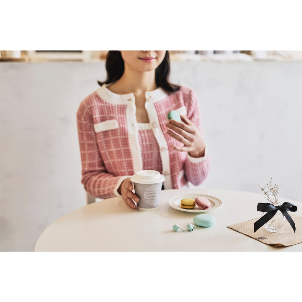 装着時も収納時もコンパクトなBluetooth(R)完全ワイヤレスステレオヘッドホン。耳への負担が少なく、周囲の音や話し声が聞き取りやすいセミオープンタイプです。充電ケースはマカロンのようなコロンとした形で、ファッションのワンポイントにもなるカラーバリエーションが特長です。