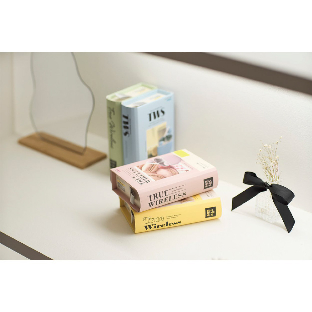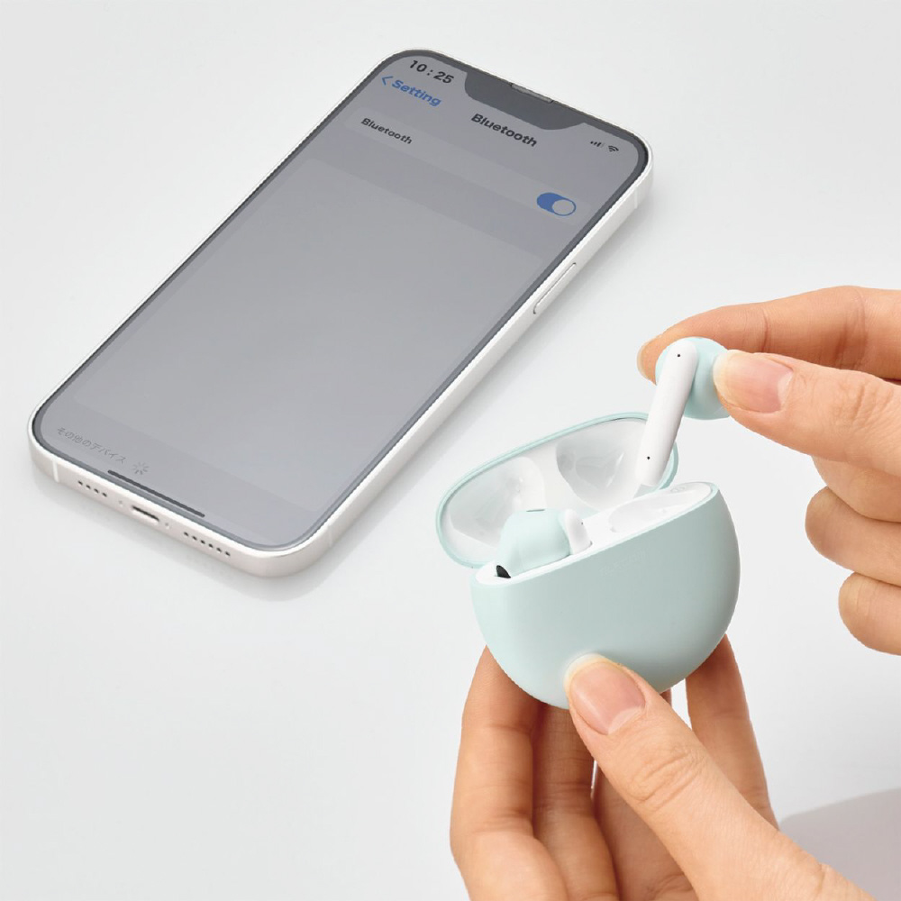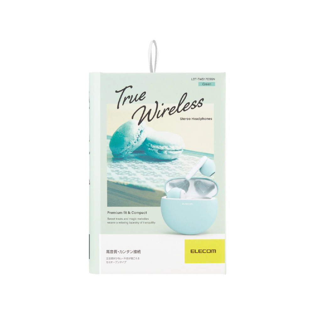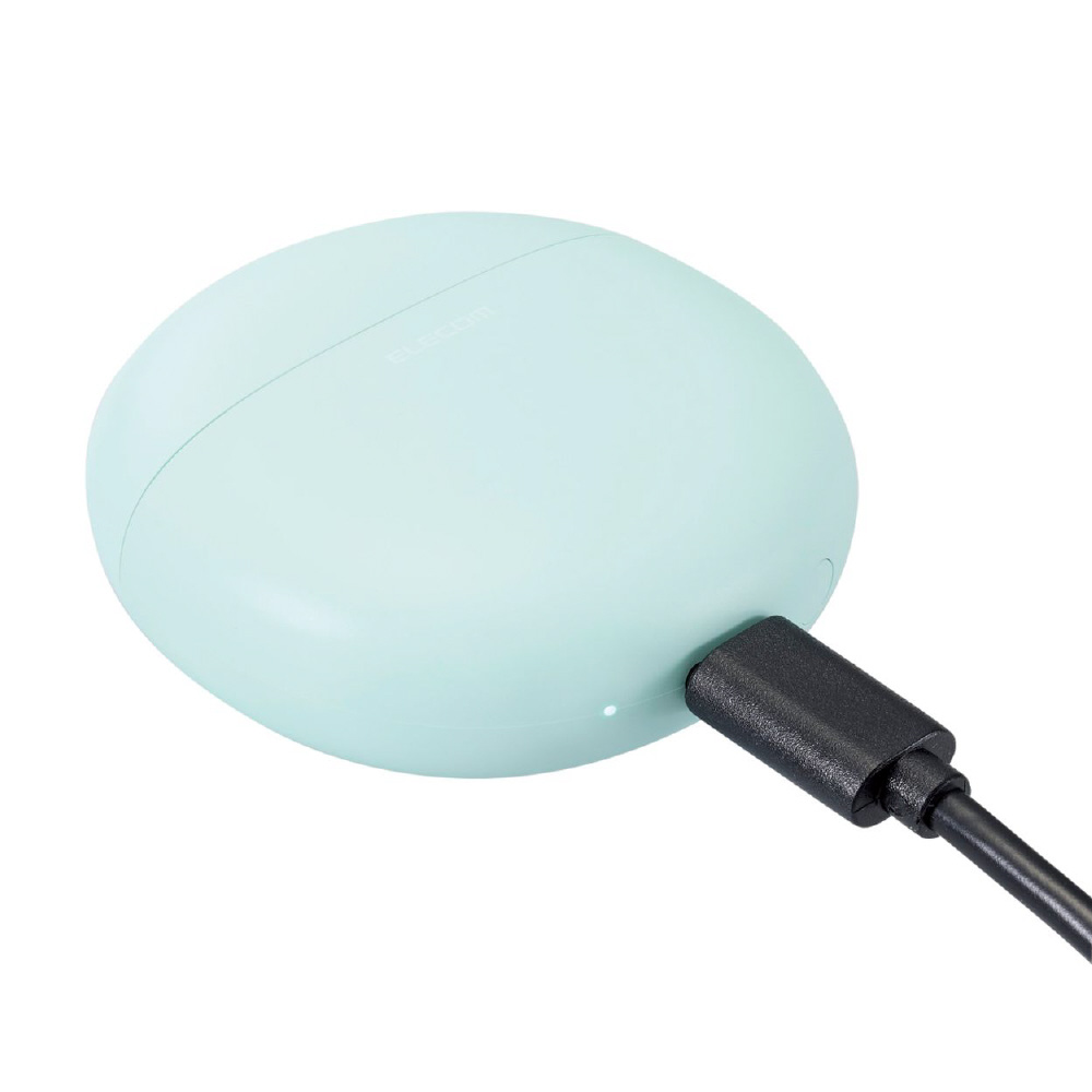 装着時も収納時もコンパクトな、セミオープンタイプのBluetooth(R)完全ワイヤレスステレオヘッドホンです。 充電ケースはマカロンのようなまるくてコロンとした形がポイントです。ファッションのワンポイントにもなる、やわらかながら存在感のある「ピンク」「ブルー」「グリーン」「イエロー」をラインアップしています。 手のひらに収まるサイズの充電ケースは、約22mmの薄さ。小さなバッグや服のポケットに入れてもシルエットが崩れず、スマートに持ち運べます。 ヘッドホンは耳への負担を軽減し、周囲の音や話し声が聞き取りやすいセミオープンタイプです。耳への圧迫感が少なく、耳せんタイプが苦手な方にもおすすめです。 耳の形状に合わせたエルゴノミクスデザインによるフィット感と、片側わずか約3.3gの超軽量設計で、快適な装着感を実現しました。 高音質コーデックAACに対応し、iPhoneをはじめとしたAAC対応スマートフォンや音楽プレーヤーで、クリアなサウンドを体感できます。 φ14.2mmの外磁型ダイナミックドライバー・Micro ETEM Driver(ELECOM Torus External Magnet Driver)を採用し、小型ながら力強く、ワイドレンジでクリアな音質を実現します。 低遅延モードは、Bluetooth(R)特有の映像と音の遅延を軽減し、ストレスなく動画視聴やゲームを楽しめます。 ヘッドホンは出っ張りが少ないため、耳への掛かりが良い形状です。マスクや髪に引っかかりにくく、スマートに装着できます。 タッチセンサーの採用により耳元での操作がスムーズかつショックレスで、ヘッドホンが耳からずれにくいです。 音楽・動画の再生中や通話中などに、音量の調節をヘッドホンのタッチセンサーで手軽に行えます。 左右のヘッドホンが完全に独立しているためクロストークがなく、リアルなステレオイメージを再現します。 ヘッドホンは片側のみでも使用が可能です。 ※使用していない片側のヘッドホンは、電源を切るか充電ケースに収納してください。 初期登録後は、充電ケースから取り出すだけでスマートフォンなどの機器と自動でペアリングします。 スマートフォンやタブレットだけでなく、パソコンなどのBluetooth(R)対応機器への接続も可能なため、テレワークにもお使いいただけます。 音楽を楽しむだけでなく、通話もできるマイクが内蔵されています。 Siriや Google アシスタント などの音声AIに対応し、ヘッドホンのタッチセンサーで簡単にスマートフォンなどの音声アシスタントが呼び出せます。音声操作で音楽をかけたり、音量調節をしたりすることが可能です。 ※通話・音声AIは左右ヘッドホンのどちらか片方のマイクが有効になります。 ヘッドホンは1回の充電で約5.5時間の連続音楽再生が可能です。 充電ケースにはバッテリーを搭載し、ヘッドホンへの充電が可能です。トータルで最大約22時間の使用が可能です。 過充電保護と過放電保護を備えたリチウムイオン電池により、繰り返し充電して使用できます。 充電ケース内蔵のバッテリー状態がわかるように、バッテリーインジケーターを搭載しています。LEDの点滅状態で充電/残量レベルを把握できます。 スマートフォンとの接続時、スマートフォン画面でヘッドホンのバッテリー残量を確認できます。 充電ケースにはUSB Type-C(TM)ポートを搭載し、iPhone 15シリーズやAndroidなどのスマートフォンと同じケーブルで充電が可能です。 飾ってもかわいいフェイクブック風のパッケージです。お部屋のちょっとしたアクセントにもぴったり。 ※USB Type-C and USB-C are trademarks of USB Implementers Forum 自社環境認定基準を1つ以上満たし、『THINKECOLOGY』マークを表示した製品です。 廃棄物削減に取り組み、製品に同梱する取扱説明書等をペーパーレス化した製品です。 環境保全に取り組み、製品の包装容器におけるプラスチック重量を、社内基準製品より20%以上削減した製品です。 環境保全に取り組み、製品の包装容器が紙・ダンボール・ポリ袋のみで構成されている製品です。