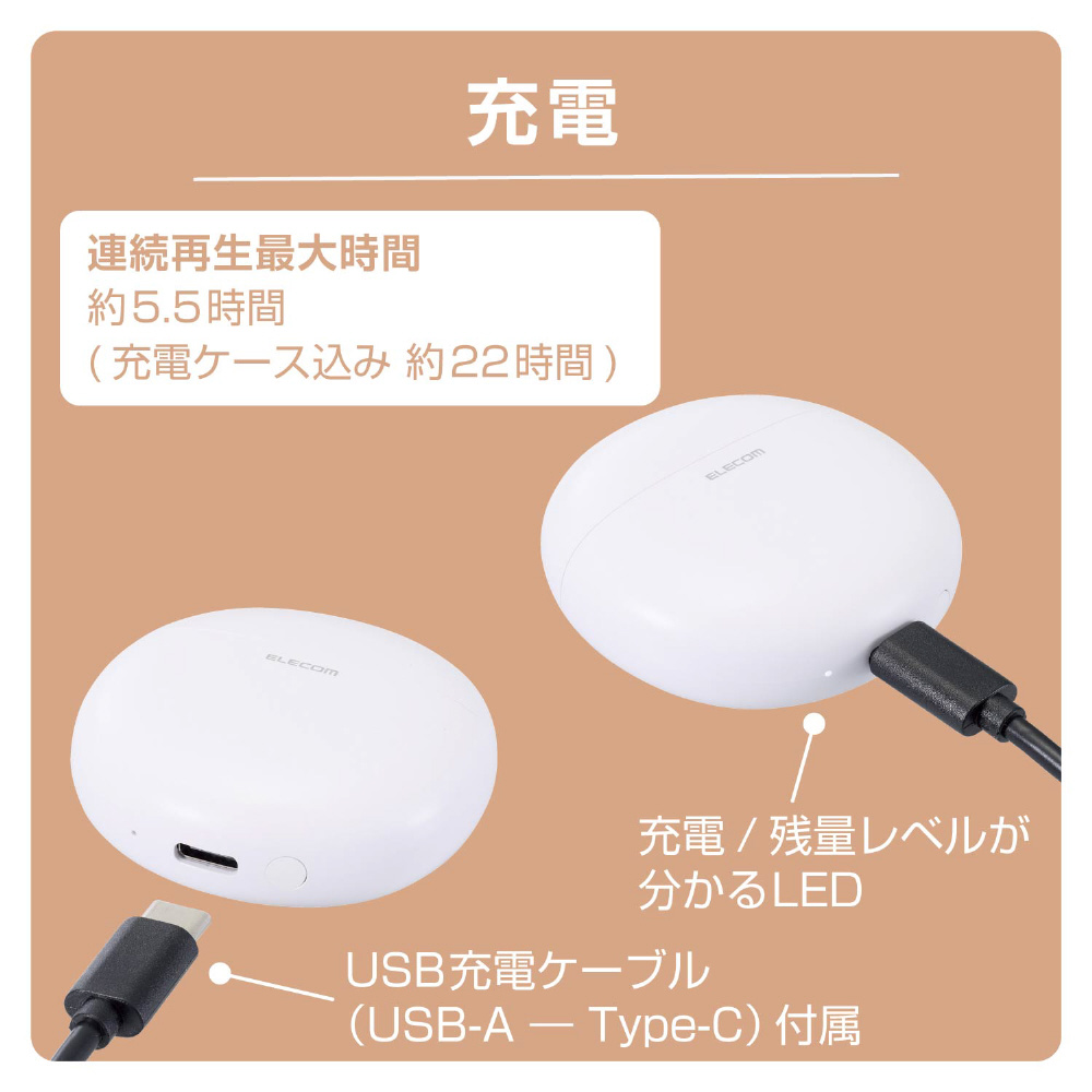 ■ 充電ケースにはUSB Type-C(TM)ポートを搭載し、iPhone 15シリーズやAndroidなどのスマートフォンと同じケーブルで充電が可能です。