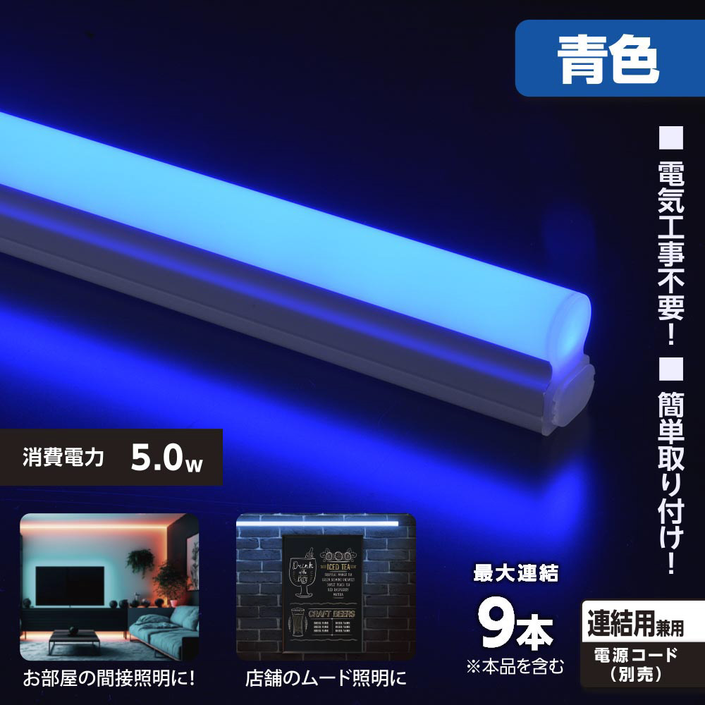 連結用LEDイーブライトスリム ライトバー 300mm/青色/5W/屋内用 LT-FLE300A-HL