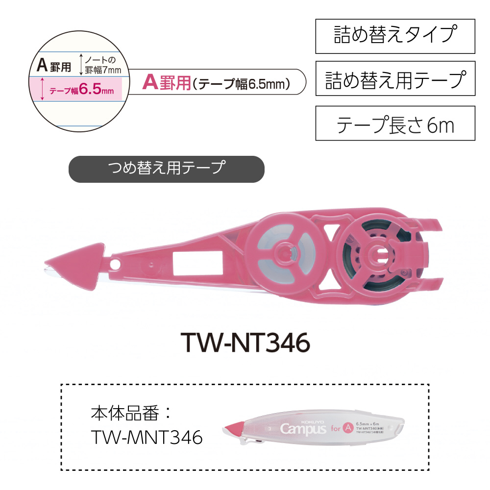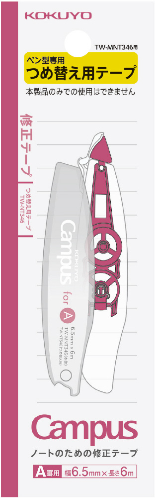| 商品名 | 修正テープペン型つめ替え用テープ [A罫用/テープ幅 : 6.5mm/長さ : 6m] Campus(キャンパス) 赤 TW-NT346 |