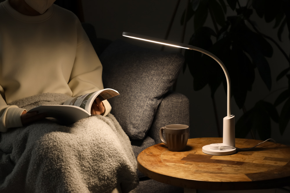 ●バッテリー内蔵なので、電源が無い場所でも使用できるため、お子様のリビング学習などにも適しています。もしもの時の非常用のライトとしても使用できます。
