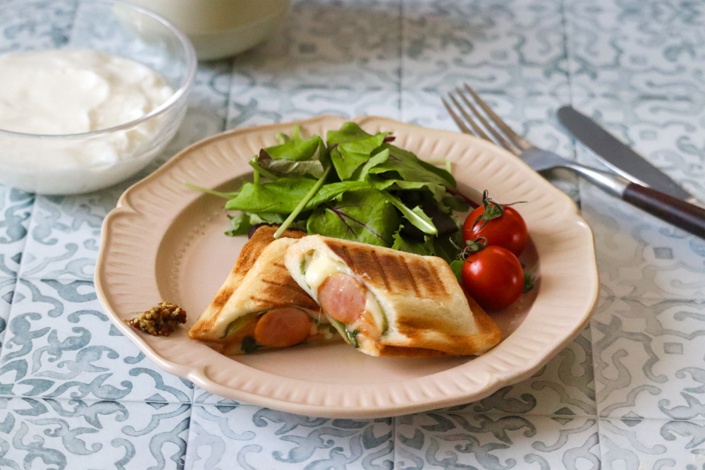 レンジで簡単!食パン1枚で作れるハーフホットサンド。