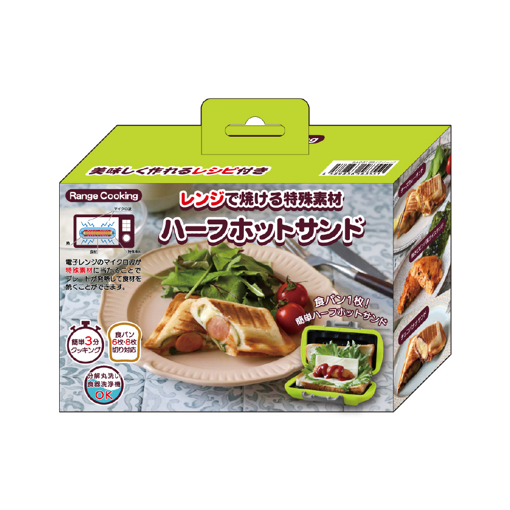 レンジで焼ける特殊素材使用ハーフホットサンドメーカー