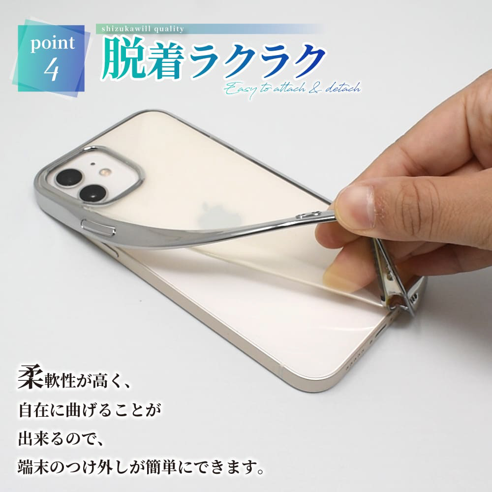 クリアケースのサイドにメッキ加工、端末本体にアクセント