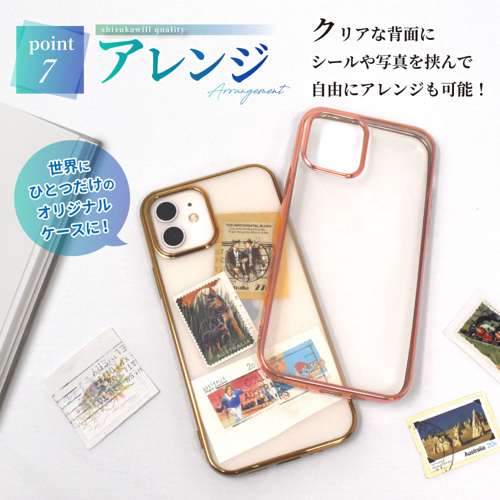クリアケースのサイドやカメラまわりをメッキ加工でアクセント!気軽に楽しむお洒落としていかがですか?