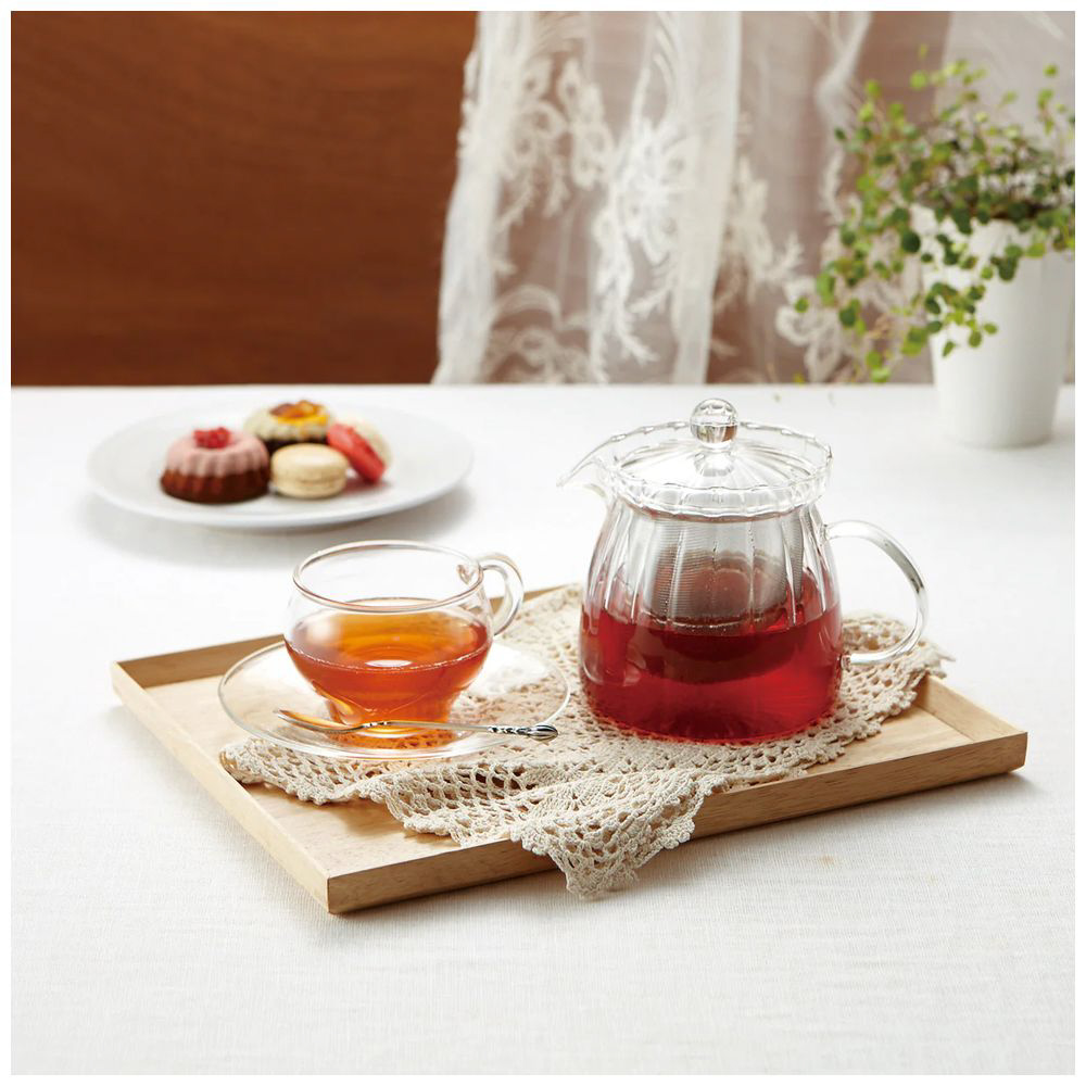 とっておきのティータイムを、ガーリーに演出してくれる耐熱性ガラスのフリルポット。