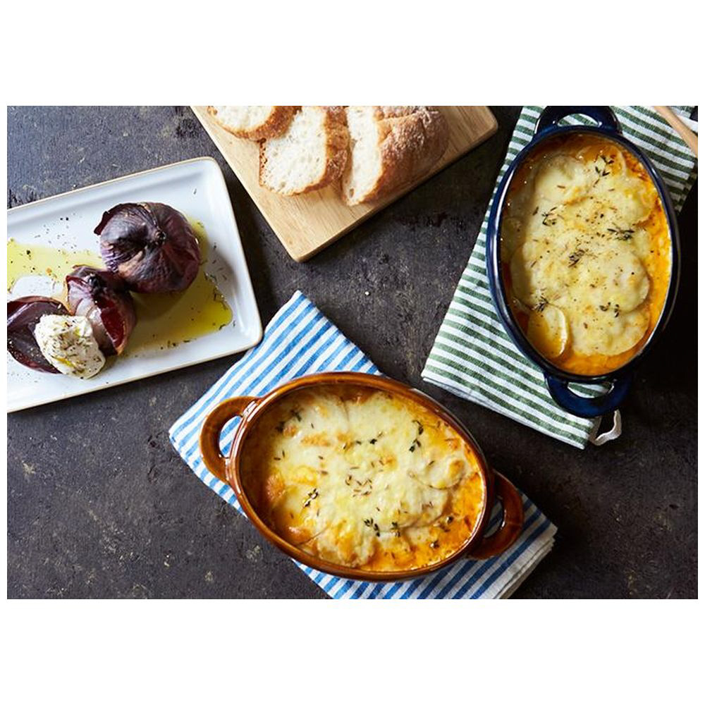 ぽっこり丸みを帯びたカタチが印象的なオーバル型のグラタン皿。程よい厚みで料理が冷めにくく、美味しい時間が持続します。料理する想いもさまさず届けるやさしいカタチ。