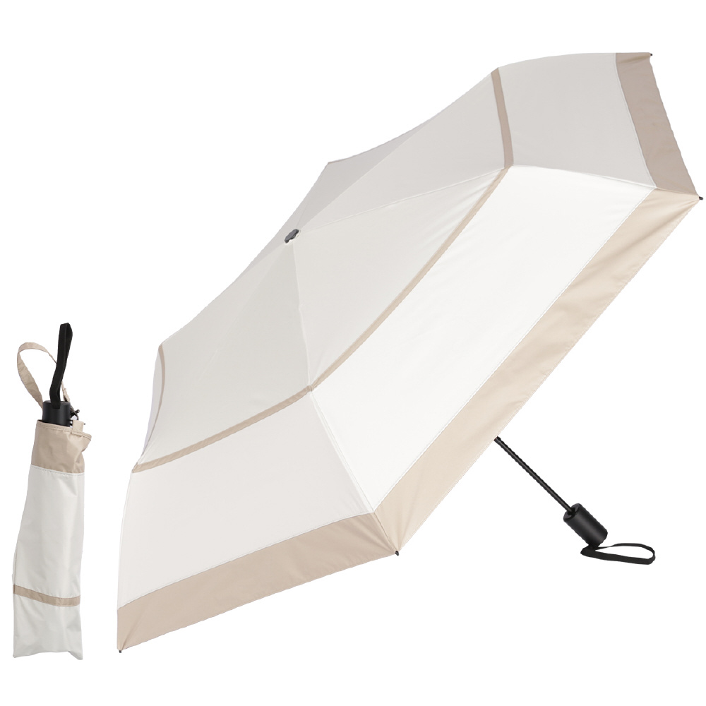 自動開閉超軽量カーボン日傘 6本骨 ボーダー オフ×ベージュ AEX53FD-063PI-off-beige [晴雨兼用傘 /53cm]