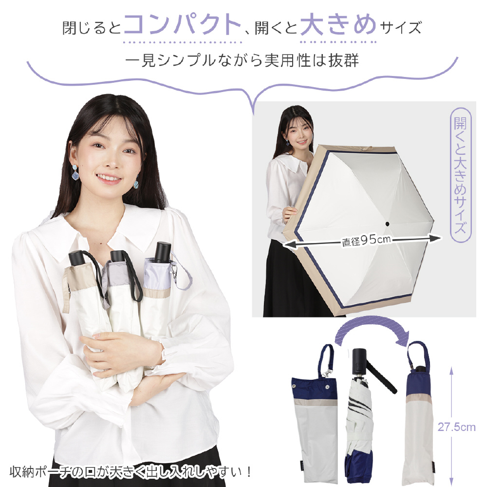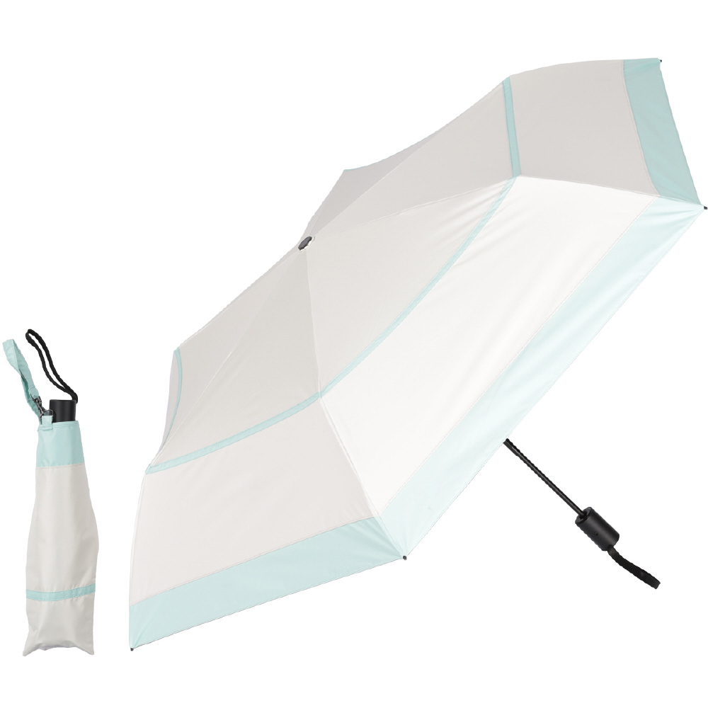 自動開閉超軽量カーボン日傘 6本骨 ボーダー オフ×ミント AEX53FD-063PI-off-mint [晴雨兼用傘 /53cm]