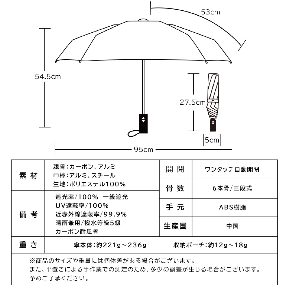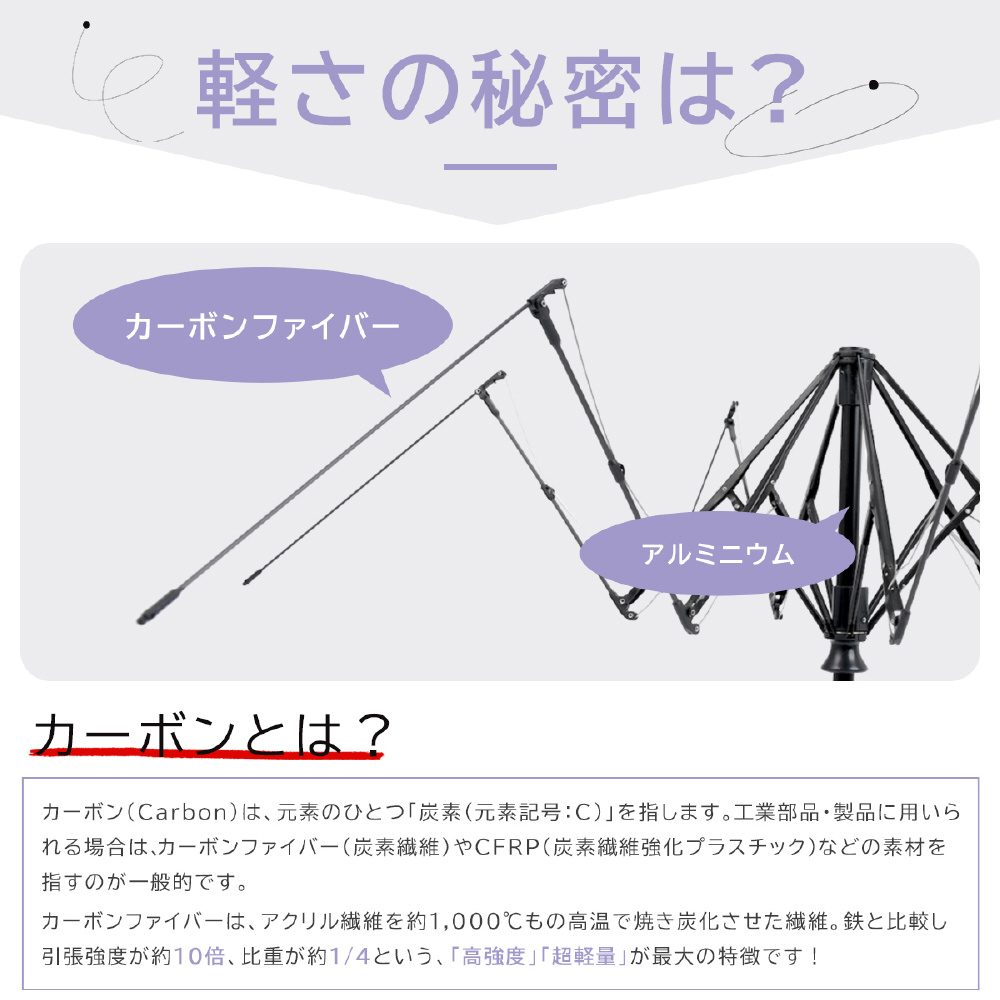 超軽量カーボン自動開閉日傘 ワンタッチで楽々開閉