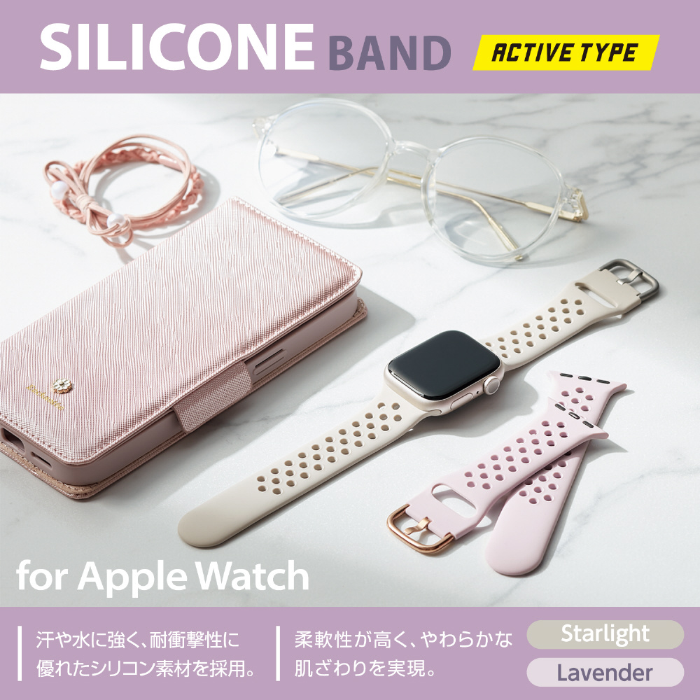 汗や水に強く装着感の良いシリコン製で、多くの通気穴により蒸れにくく軽量化されスポーツに最適なApple Watch用シリコンバンド アクティブタイプです。