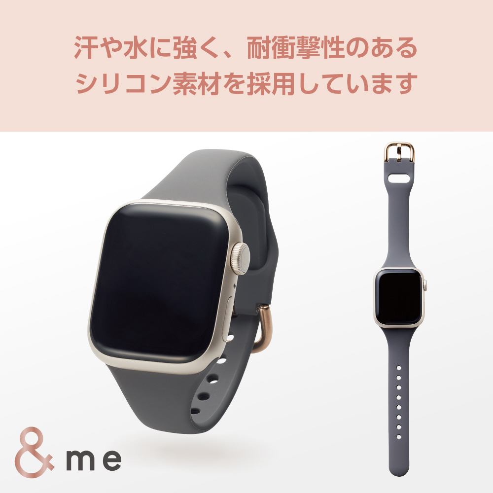 アップルウォッチ バンド Apple Watch SE ( 第2世代 / 第1世代 ) / Series 9 / 8 / 7 / 6 / 5 / 4 / 3 / 2 / 1 41mm 40mm 38mm シリコン ベルト 耐衝撃 スリム &me チャコールグレー AW-41BDSCJGY