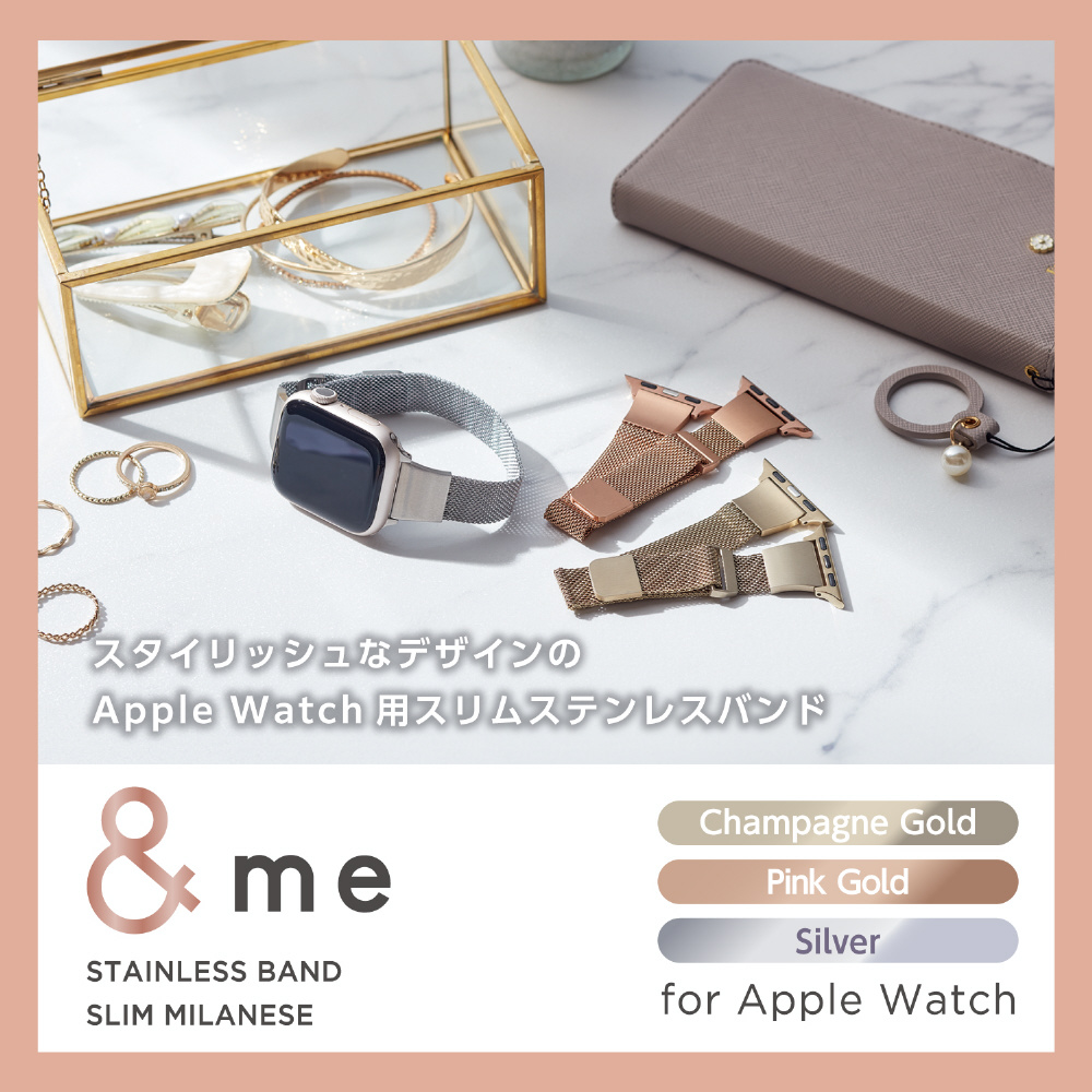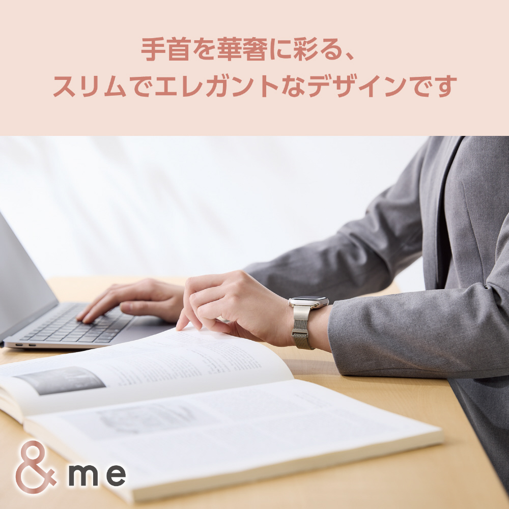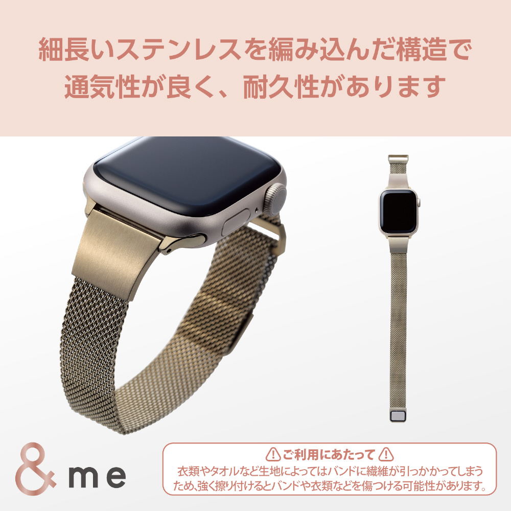アップルウォッチ バンド Apple Watch SE ( 第2世代 / 第1世代 ) / Series 9 / 8 / 7 / 6 / 5 / 4 / 3 / 2 / 1 41mm 40mm 38mm ステンレス マグネット ベルト スリム ミラネーゼ &me シャンパンゴールド