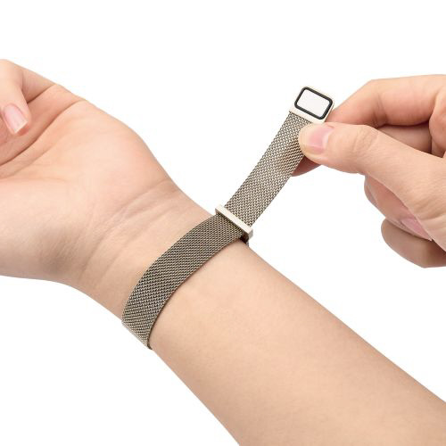 工具なしで長さ調節が簡単にできる、マグネットバックルを採用。通気性がよく手首へのフィット感が高い編み込み構造で、スタイリッシュなデザインのApple Watch用ステンレスバンドです。