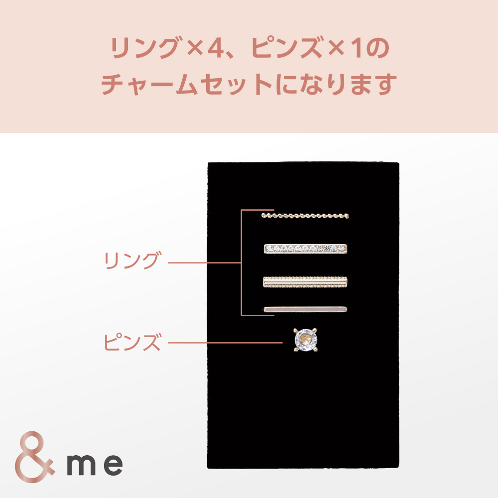 お気に入りのバンドをその日の気分に合わせて華やかに彩るリング&ピンズのセットです。