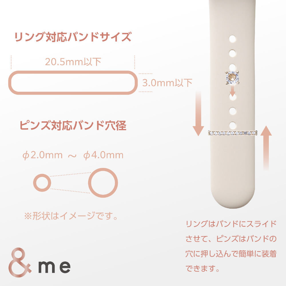 | 商品名 | アップルウォッチ アクセサリー バンドチャーム リング×4 ピンズ×1 Apple Watch バンド &me ストーン AW-RINGPINS02S |
