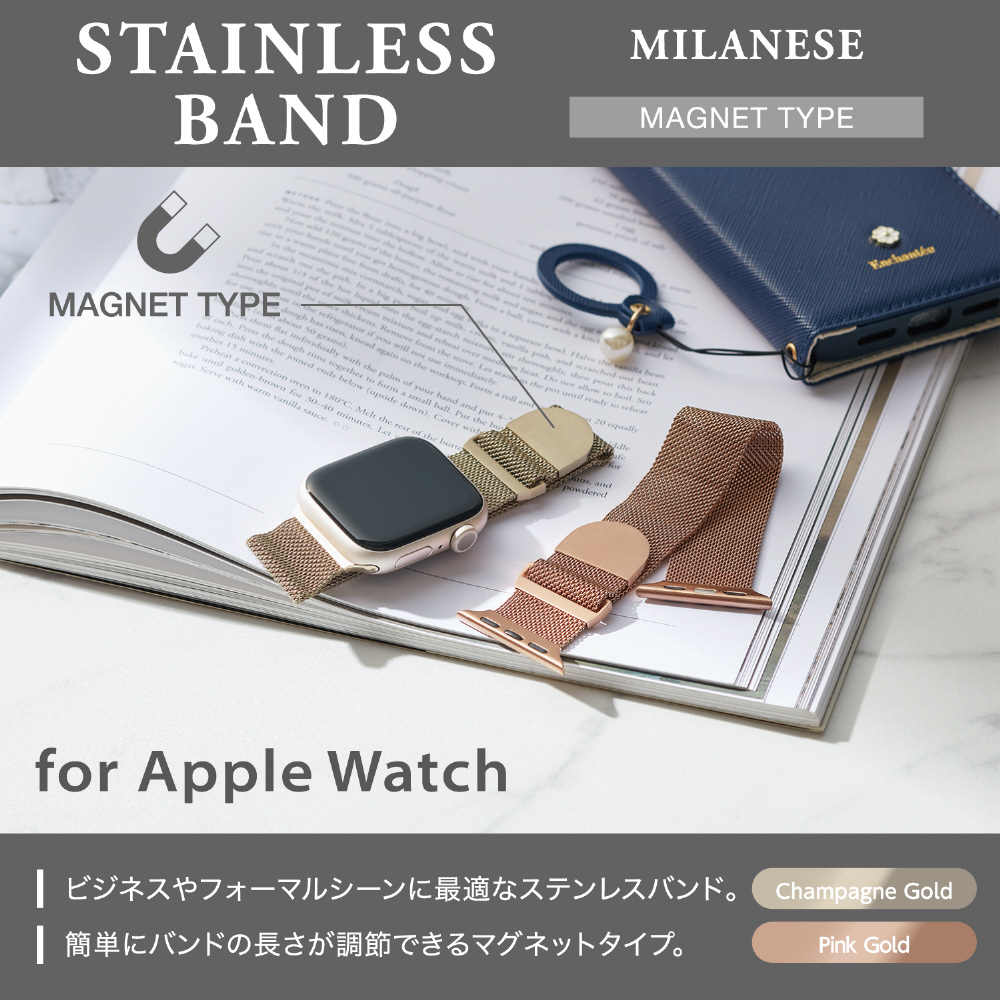 アップルウォッチ バンド Apple Watch SE ( 第2世代 / 第1世代 ) / Series 9 / 8 / 7 / 6 / 5 / 4 / 3 / 2 / 1 41mm 40mm 38mm ステンレス マグネット ベルト ミラネーゼ ピンクゴールド AW-41BDSSMMPN