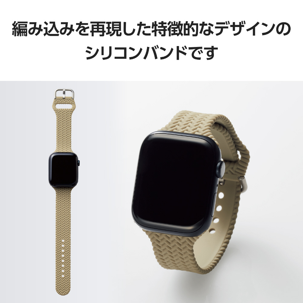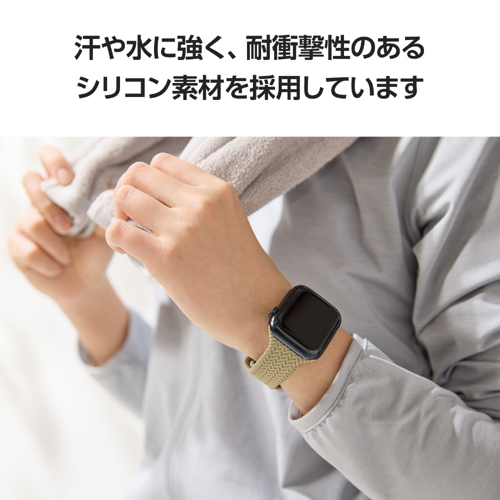 アップルウォッチ バンド Apple Watch Ultra 2 / Ultra / SE ( 第2世代 / 第1世代 ) / Series 9 / 8 / 7 / 6 / 5 / 4 / 3 / 2 / 1 49mm 45mm 44mm 42mm シリコン ベルト 耐衝撃 編み込み風 カーキ AW-45BDSCBKH