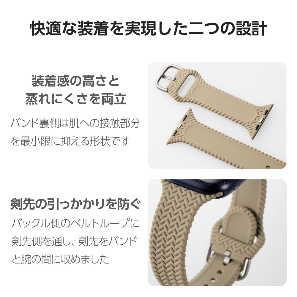 編み込みを再現した特徴的なデザインで、汗や水に強く装着感の良いのApple Watch用シリコンバンドです。