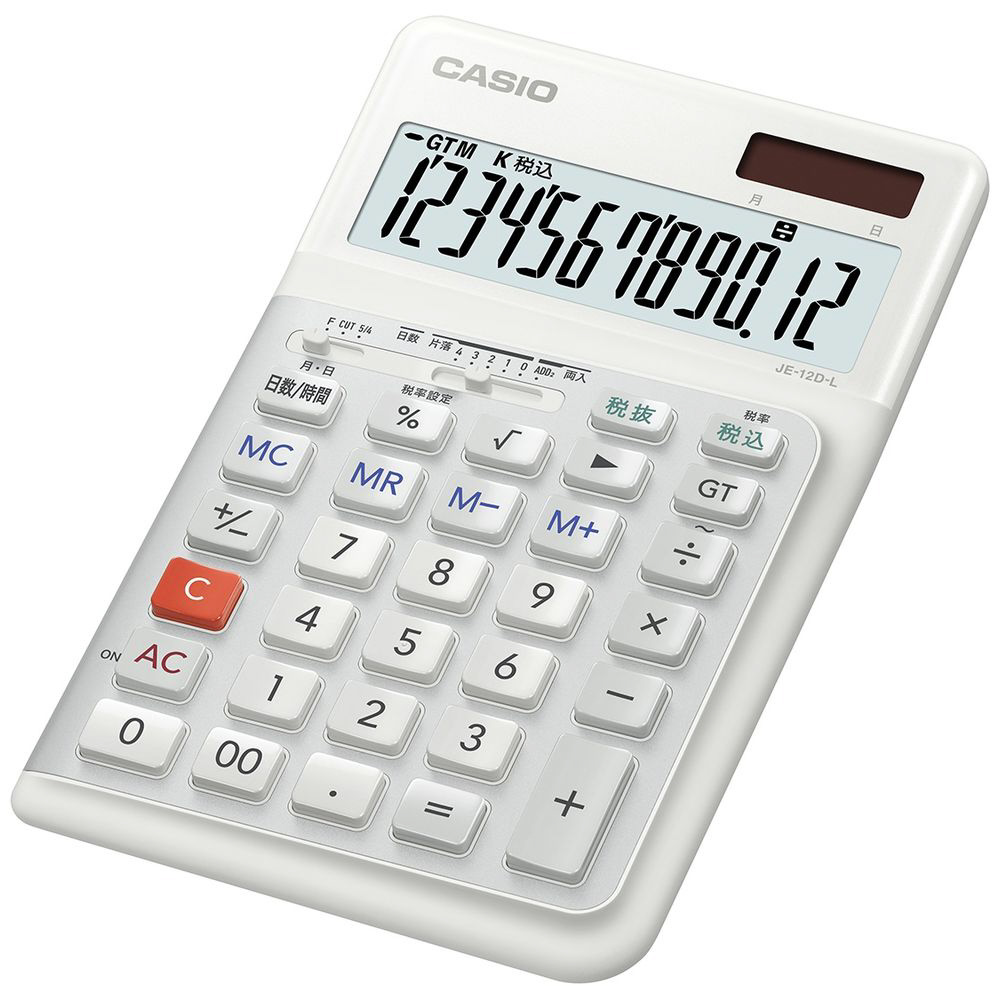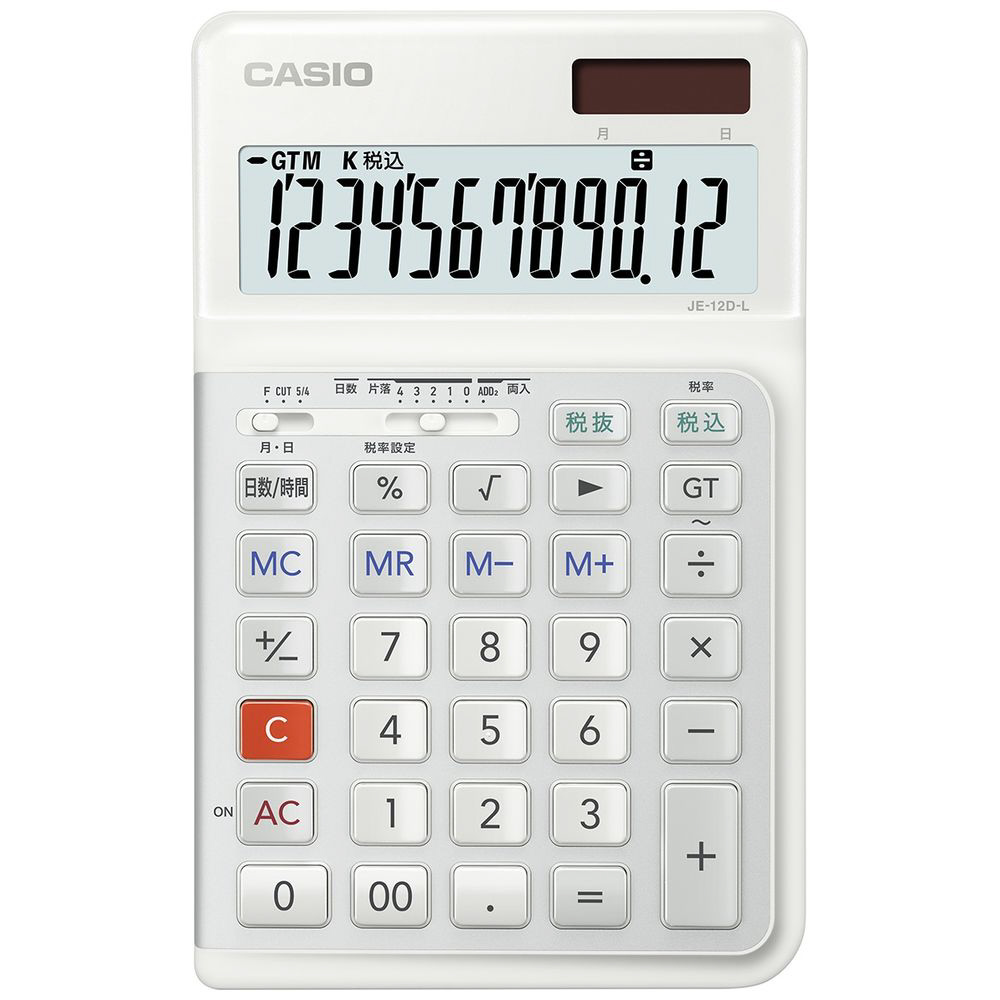 人間工学電卓 ジャストタイプ・左手用 ホワイト JE-12D-L-WE-N [12桁]