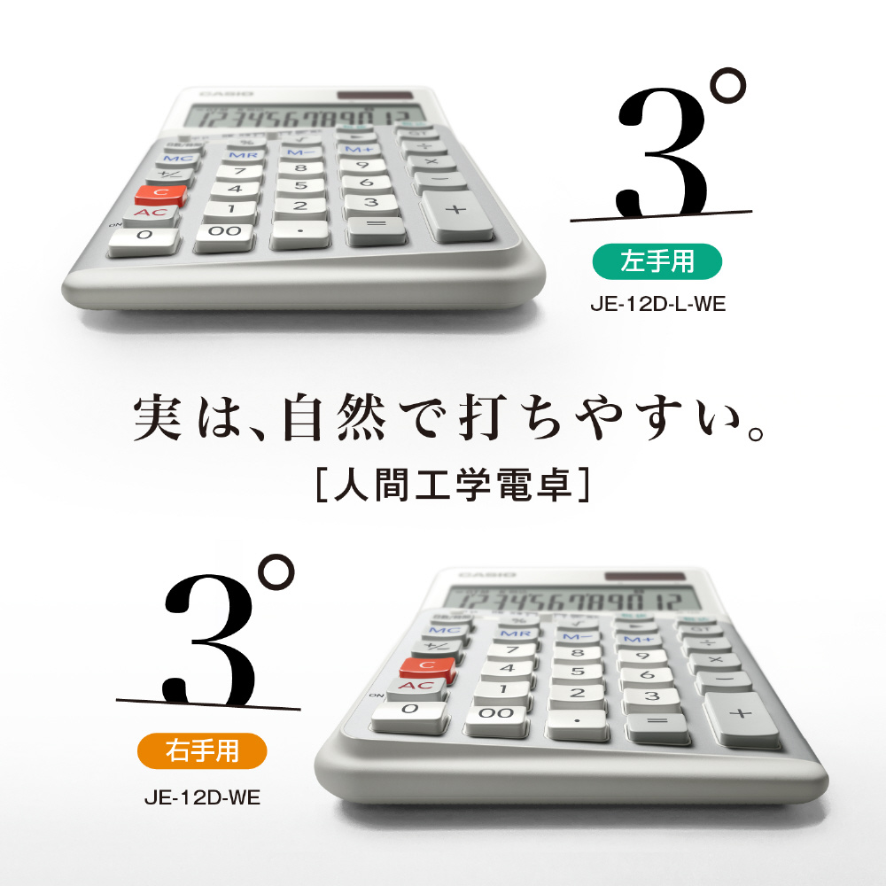 人間工学電卓 デスクタイプ・左手用 ホワイト DE-12D-L-WE-N [12桁]