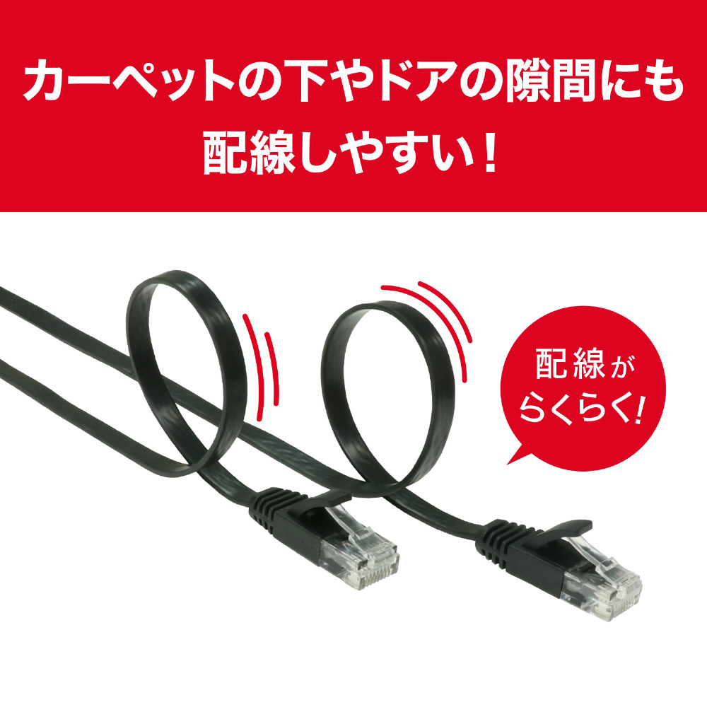 カーペット下やドアの間への配線に最適な極薄タイプ