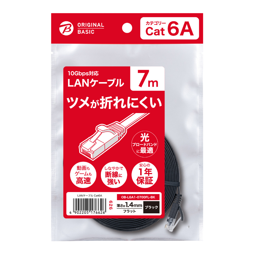 OB-L6A1-0700FL-BK LANケーブル ブラック [7m /カテゴリー6A /フラット]