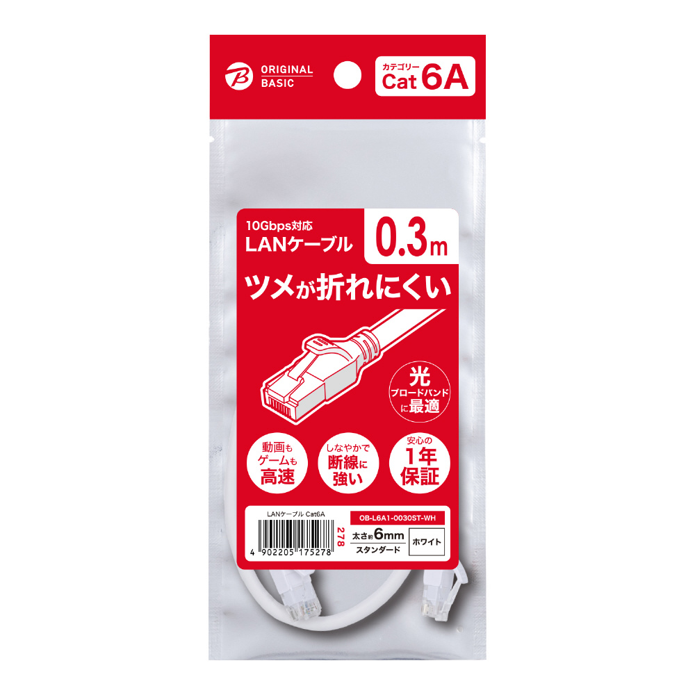 OB-L6A1-0030ST-WH LANケーブル ホワイト [0.3m /カテゴリー6A /スタンダード]