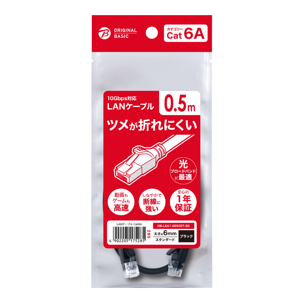 OB-L6A1-0050ST-BK LANケーブル ブラック [0.5m /カテゴリー6A /スタンダード]