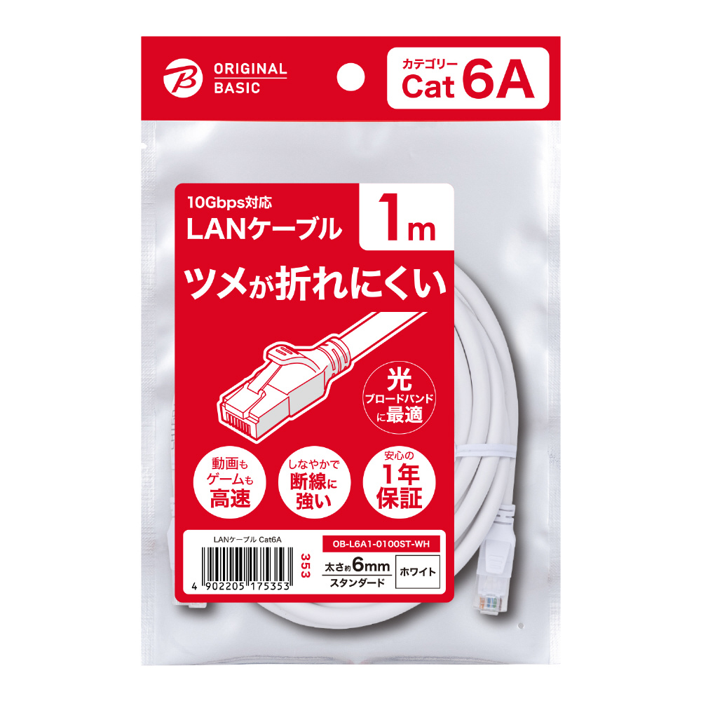 OB-L6A1-0100ST-WH LANケーブル ホワイト [1m /カテゴリー6A /スタンダード]