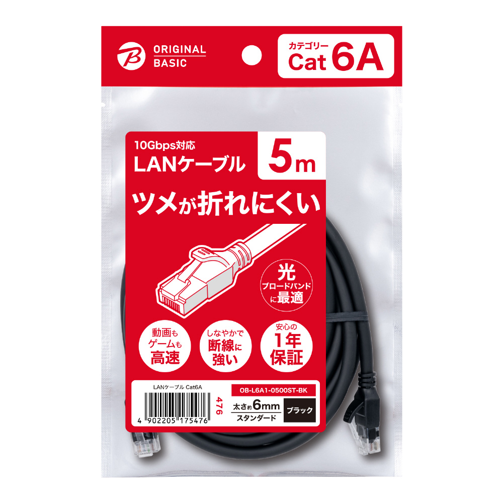 OB-L6A1-0500ST-BK LANケーブル ブラック [5m /カテゴリー6A /スタンダード]