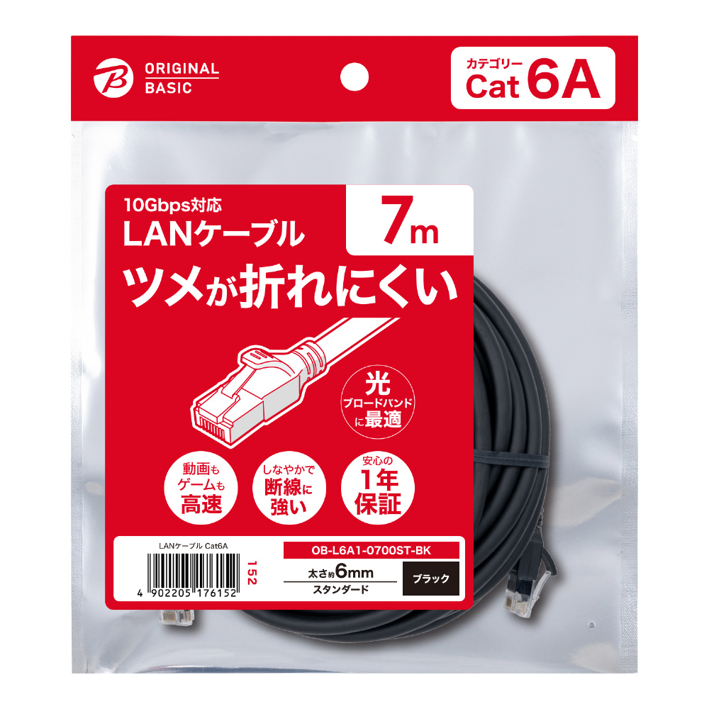 OB-L6A1-0700ST-BK LANケーブル ブラック [7m /カテゴリー6A /スタンダード] 【864】
