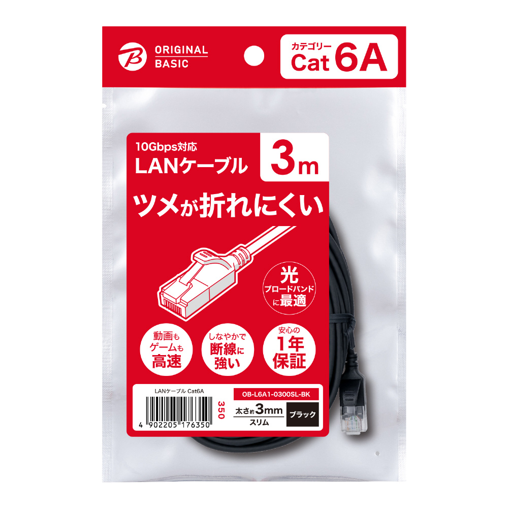 OB-L6A1-0300SL-BK LANケーブル ブラック [3m /カテゴリー6A /スリム]