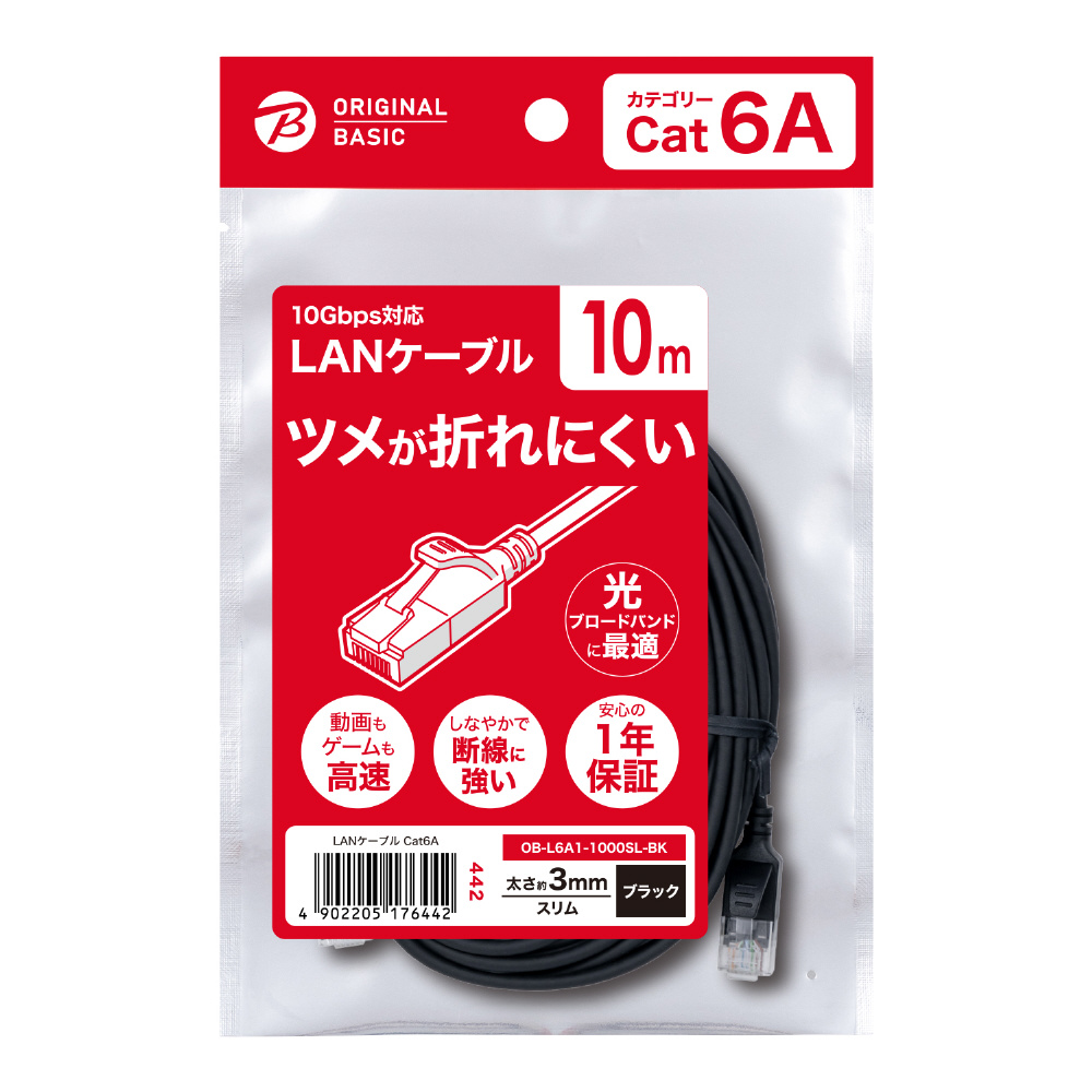 OB-L6A1-1000SL-BK LANケーブル ブラック [10m /カテゴリー6A /スリム]